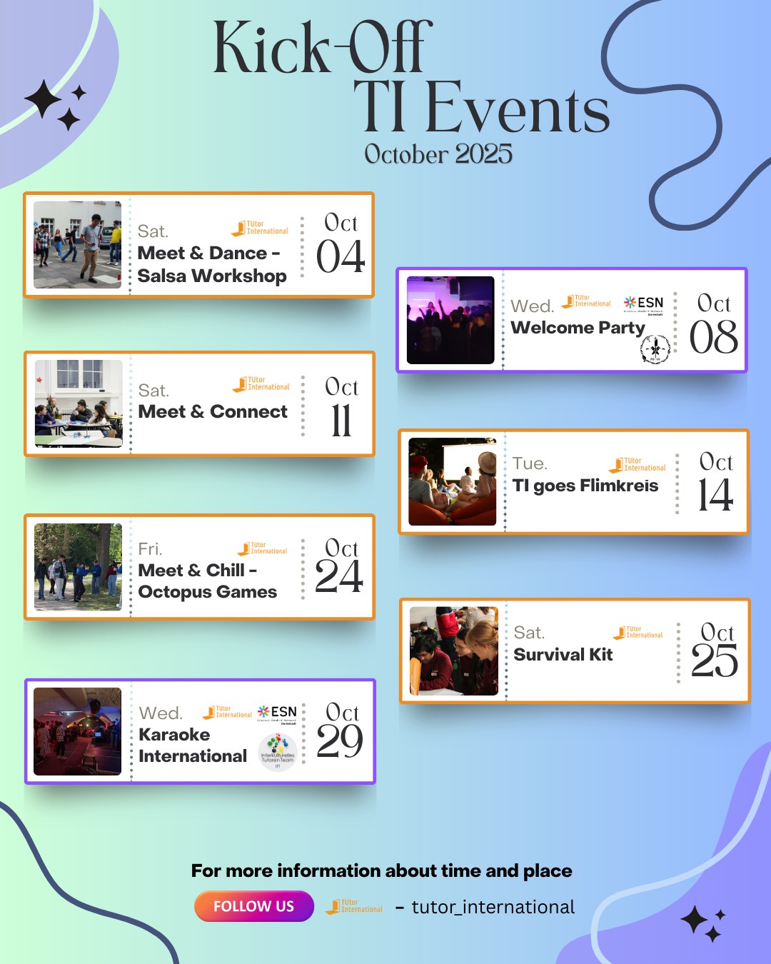 At TUtor International, we want to have a great time together. Our events, offers and personal support serve as a bridge between different cultures and the development of experiences and perspectives. Not only do we want you to study successfully, but we also want you to get a sense of belonging and support. In this way, we hope to create a dynamic and inclusive learning environment and promote networking with other students.